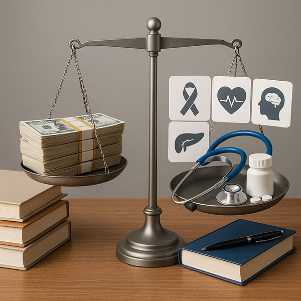 When money goes to medical research, which disease or diseases should have priority? Should it be allocated mostly to cancer or heart disease or diabetes or mental health issues? Who should determine the priority, and how should the money be divided? Along those lines, should the money go to administration to pay for staff or to medical supplies or to universities for research courses? | ||
